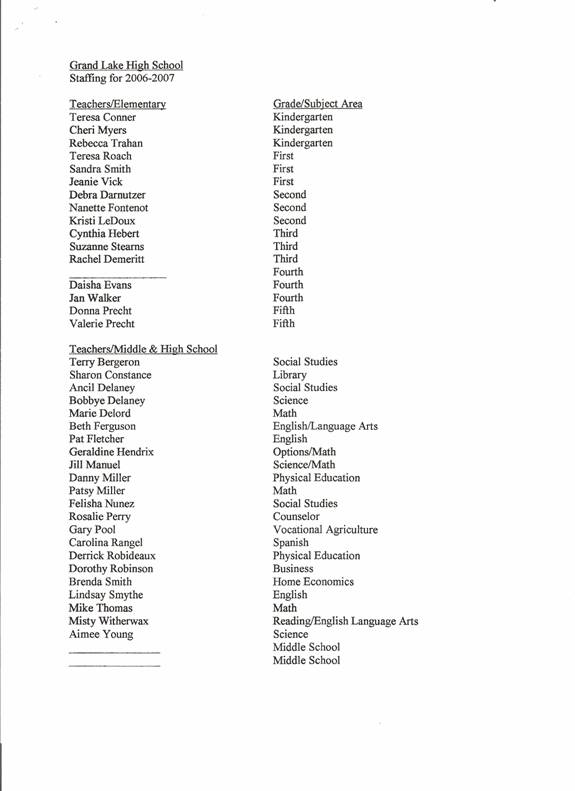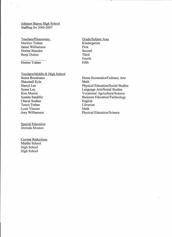Ms. Gernine Mailhes Teacher, Johnson Bayou High School, effective at the close of the day February 24, 2006 due to health reasons.