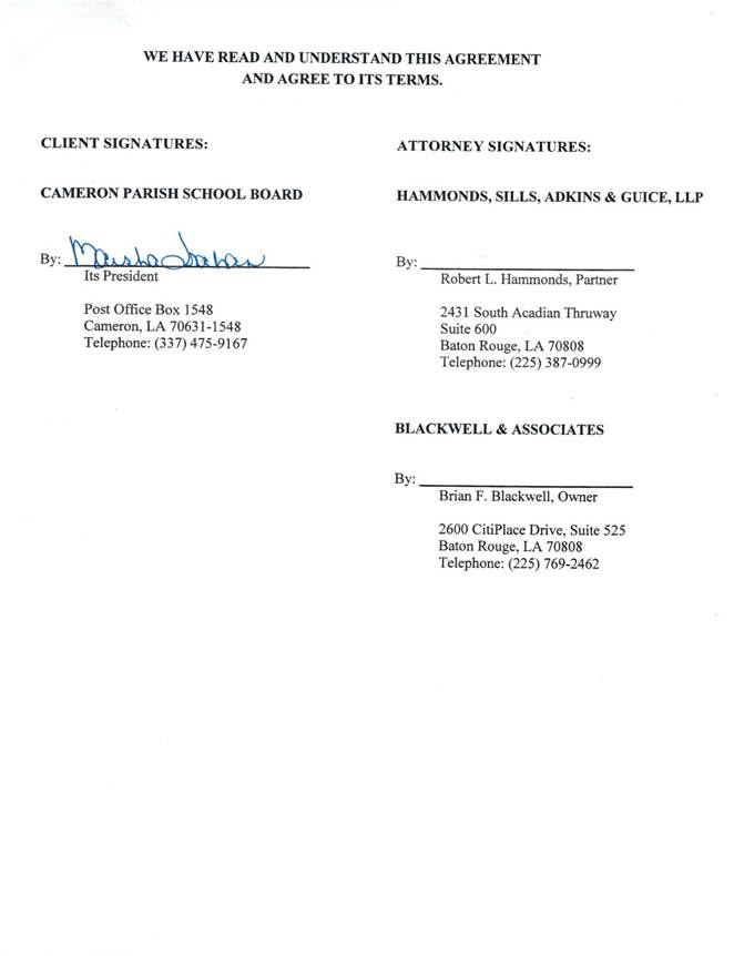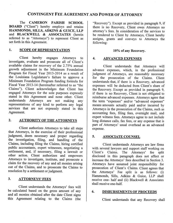 · A Contingent Fee Agreement and Power of Attorney for the Minimum Foundation Program litigation for Fiscal Year 2013-14.
